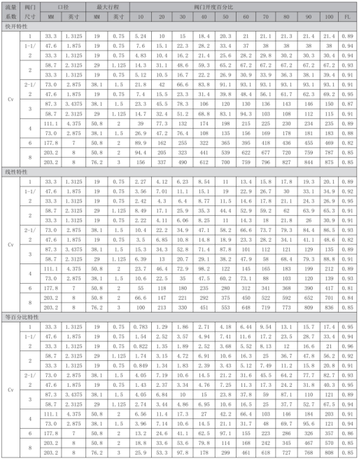 CRG200产品额定系数流量表